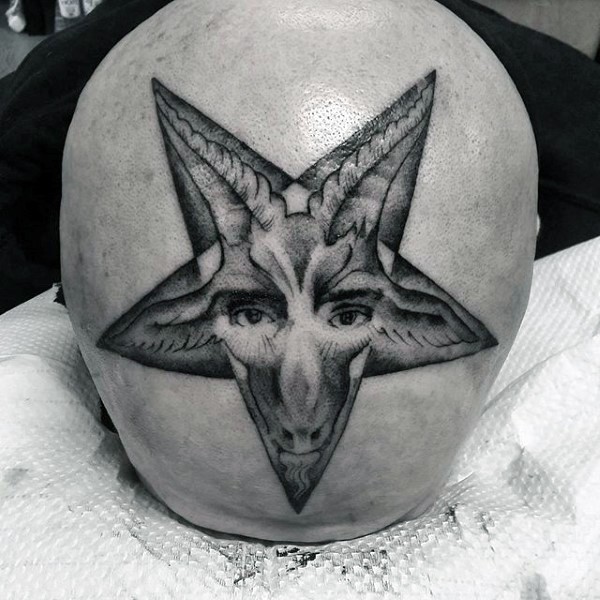 头部点刺风格黑色星星与魔鬼脸纹身图案