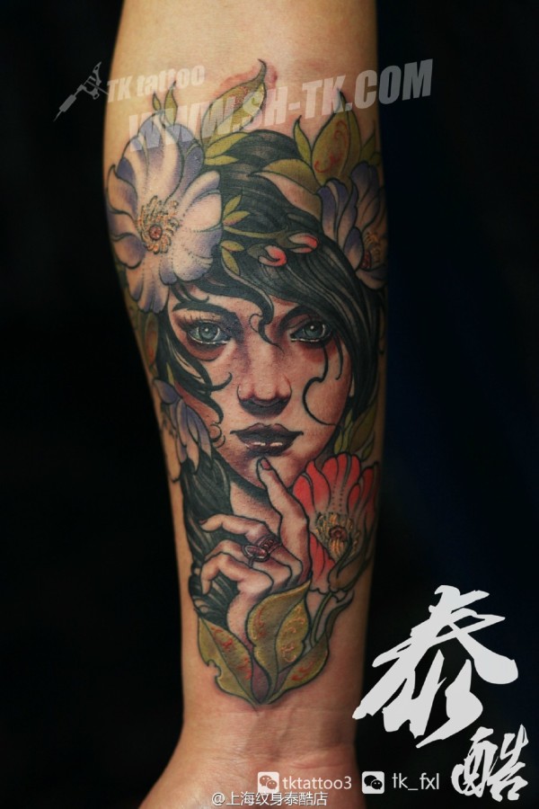 女性肩部肖像刺青_肖像纹身图案大全_纹身图吧