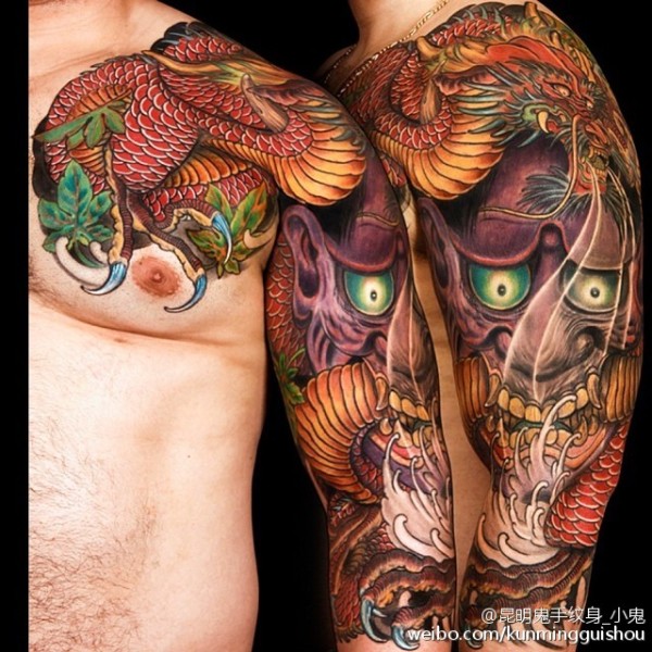 日式手彫刺青作品—半甲龙很感谢客户认可手彫刺青,手彫是日本纹身的手工雕刻技术,时间可以追溯到日本17世纪的江户时代。19世纪,手彫技术被日本黑帮挪用,被用作入会仪式,象征着从此就是江湖中人。在日式传统