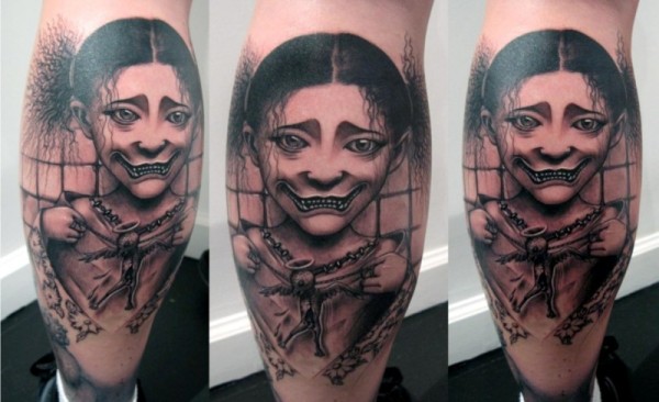 卡通风格黑色令人毛骨悚然的微笑女人纹身图案