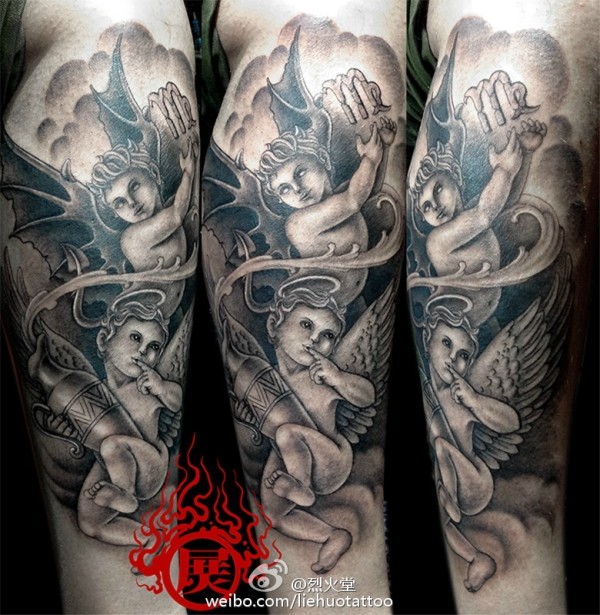 根据客人要求设计的星座守护纹身!张鹏展作品!