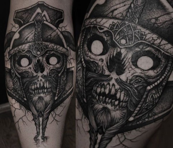 雕刻风格黑色恶魔头骨头盔纹身图案