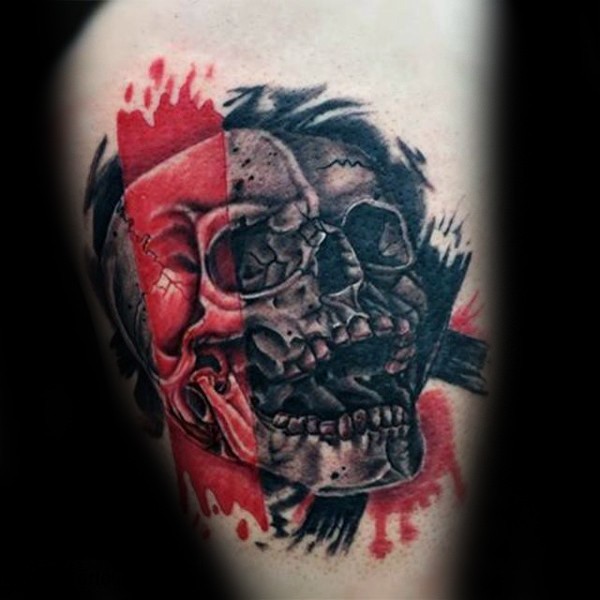 红色和黑色的人类骷髅个性纹身图案