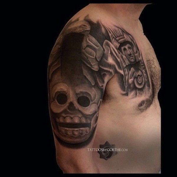 半甲大型石雕风格黑白雕塑纹身图案