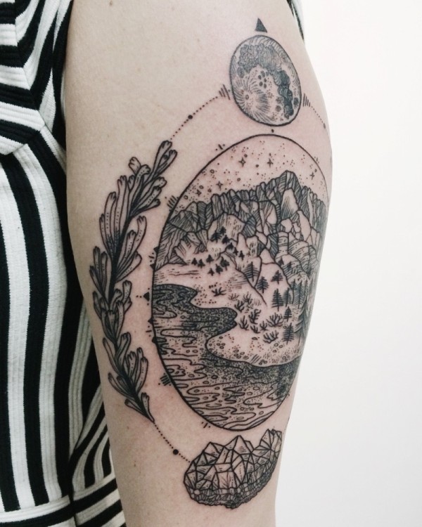 15款女神纹身小清新纹身月亮简单个性线条纹身图案