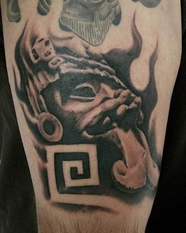 黑灰风格滑稽的石像和符号纹身图案