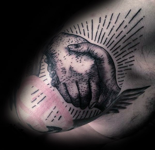 雕刻风格黑色太平洋象征符号握手纹身图案