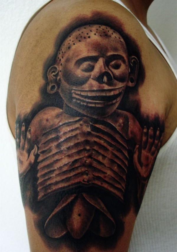大臂黑灰风格古代雕塑纹身图案