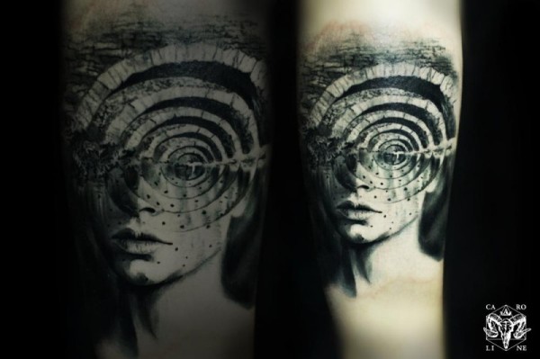 小臂壮观的超现实主义风格黑色神秘女性纹身图案