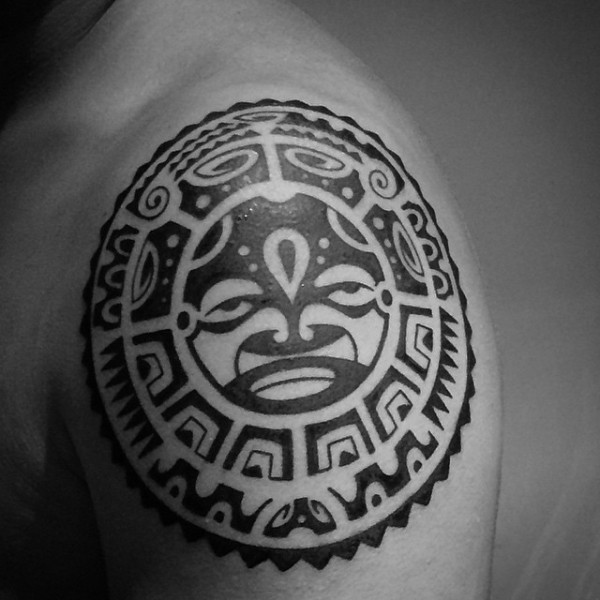 肩部圆形黑色波利尼西亚饰品纹身图案