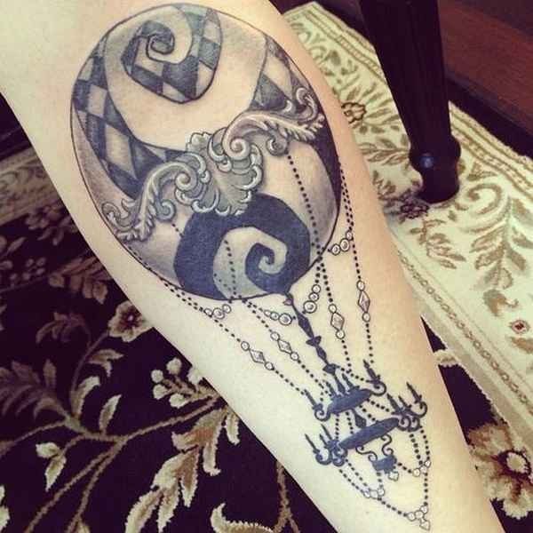 小臂可爱的黑白吊灯飞行气球纹身图案