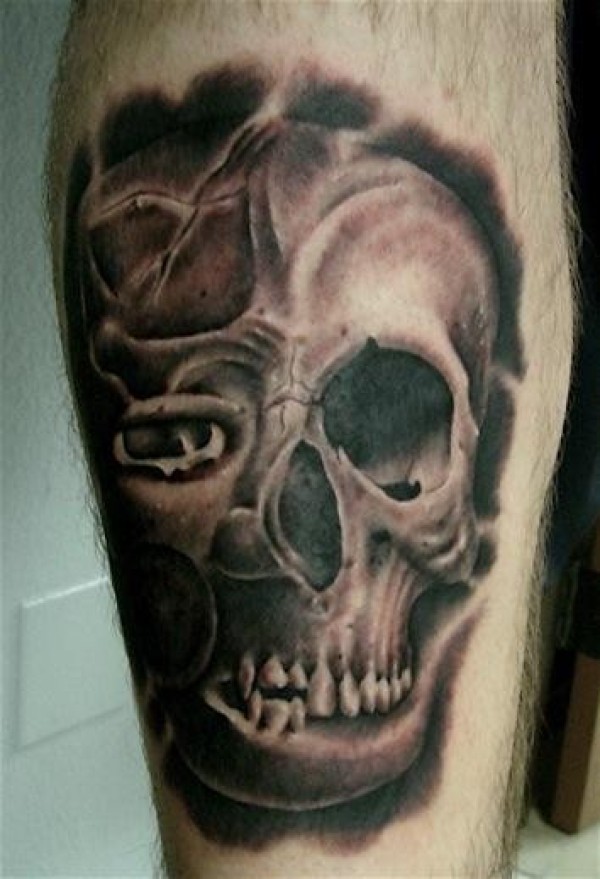 壮观的黑灰半人半恶魔骷髅纹身图案