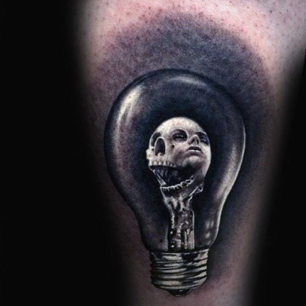 逼真的黑白骷髅和人像组合灯泡纹身图案