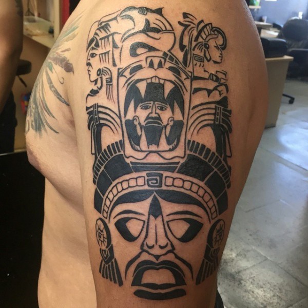 大臂经典黑色部落符号纹身图案