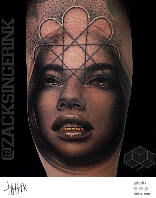 个性写实的雕式黑白女性肖像纹身图案
