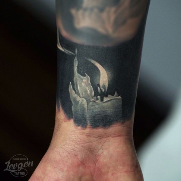 手臂写实风格黑白逼真的蜡烛纹身图案