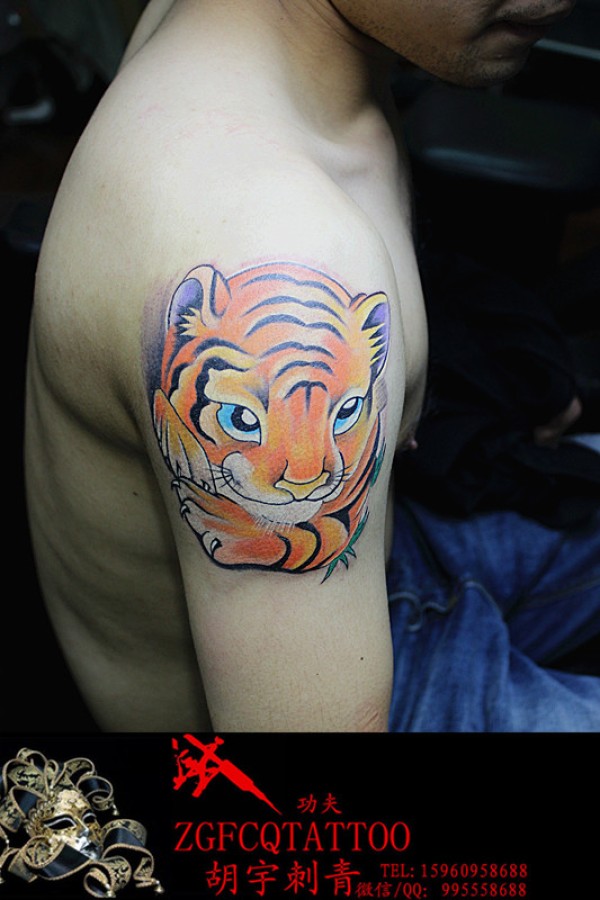 老虎纹身-大臂纹身-福建三明沙县针功夫刺青作品