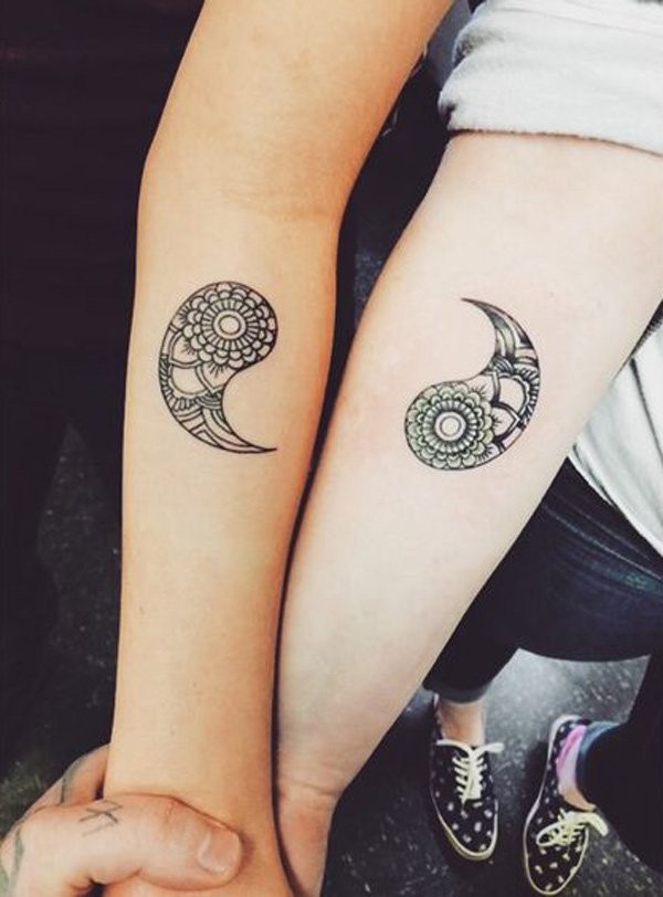 情侣手臂分开的黑白阴阳八卦符号纹身图案