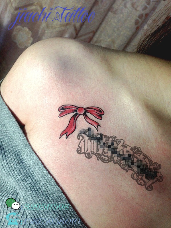 女生胸前漂亮的彩带纹身图案大全