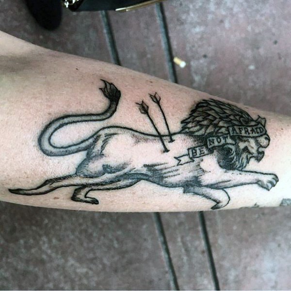 黑色箭和字母狮子手臂纹身图案