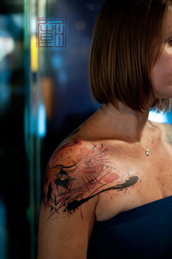 【泼墨刺青】近年来纹身界掀起一股泼墨风潮。