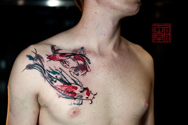 【泼墨刺青】近年来纹身界掀起一股泼墨风潮。