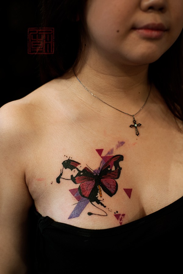 女性喜欢的漂亮的3D立体蝴蝶纹身图案