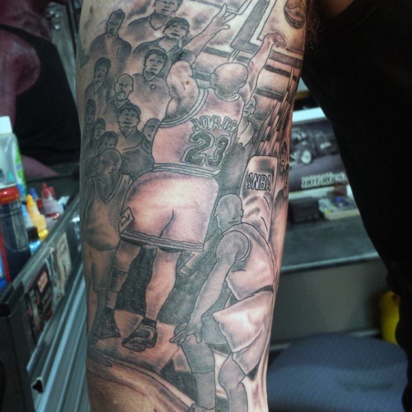 黑灰风格各种篮球运动员纹身图案