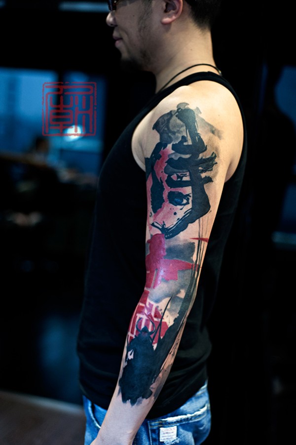 【泼墨刺青】近年来纹身界掀起一股泼墨风潮。