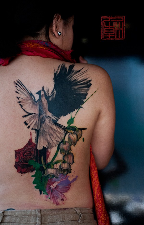 【泼墨刺青】近年来纹身界掀起一股泼墨风潮。