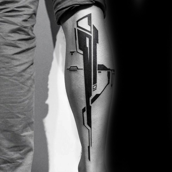 小腿有趣的黑色简约纹身图案