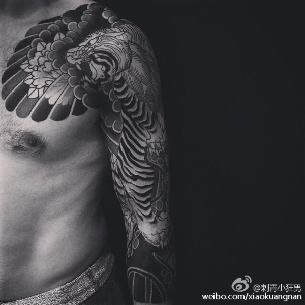 老虎图腾纹身 多款黑灰纹身点刺技巧老虎纹身图案