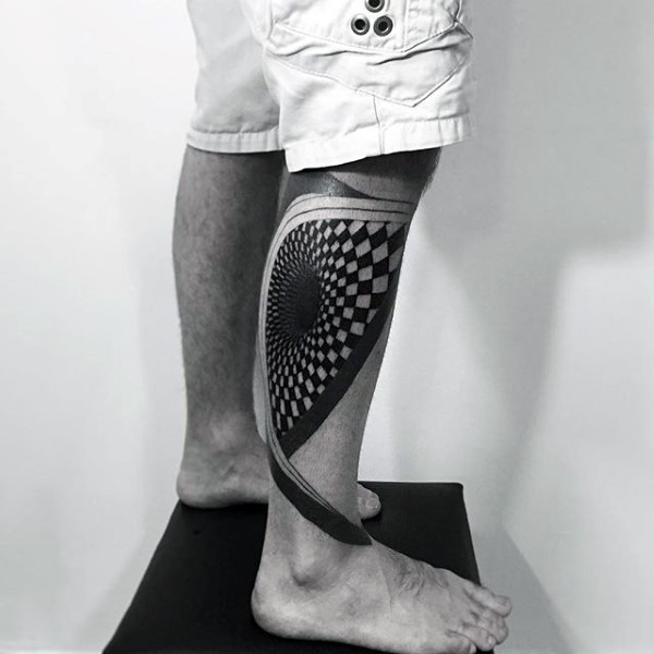 小腿黑色个性的几何图形纹身图案