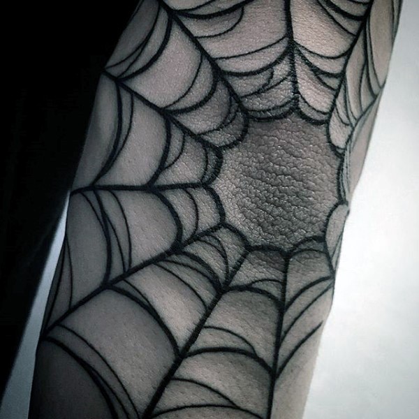 手臂黑色的蜘蛛网纹身图案