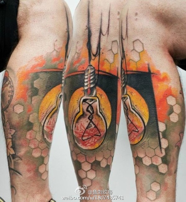 包小腿迷幻灯泡纹身