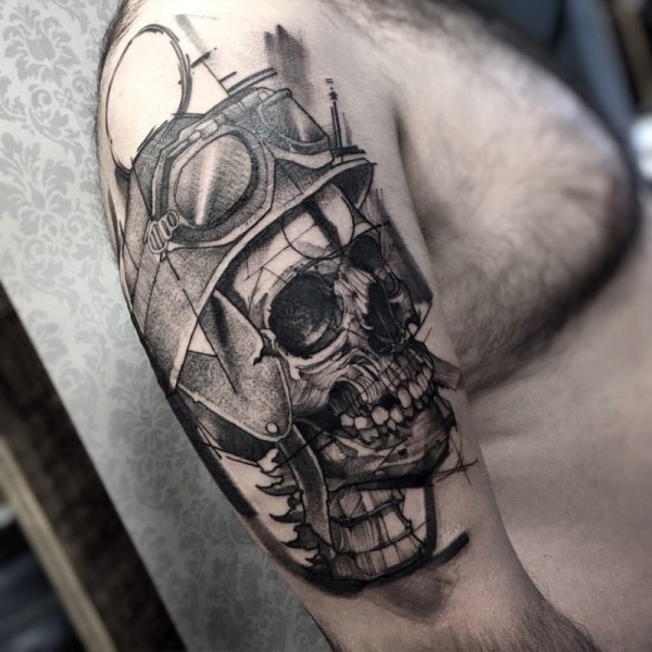 大臂令人难以置信的黑色自行车骑手骷髅纹身图案