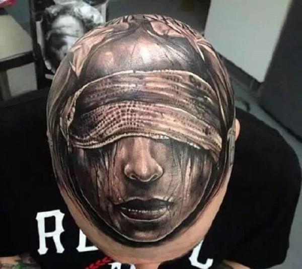 黑灰风格令人毛骨悚然的失明女子肖像纹身图案