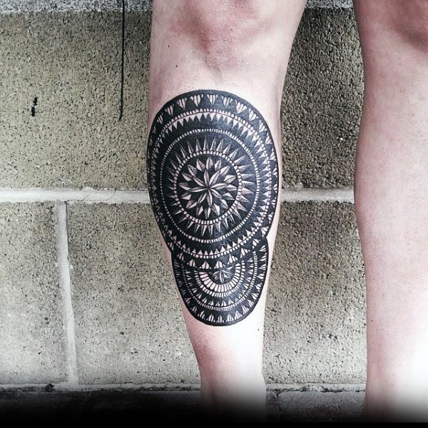 小腿好看的黑色梵花装饰纹身图案