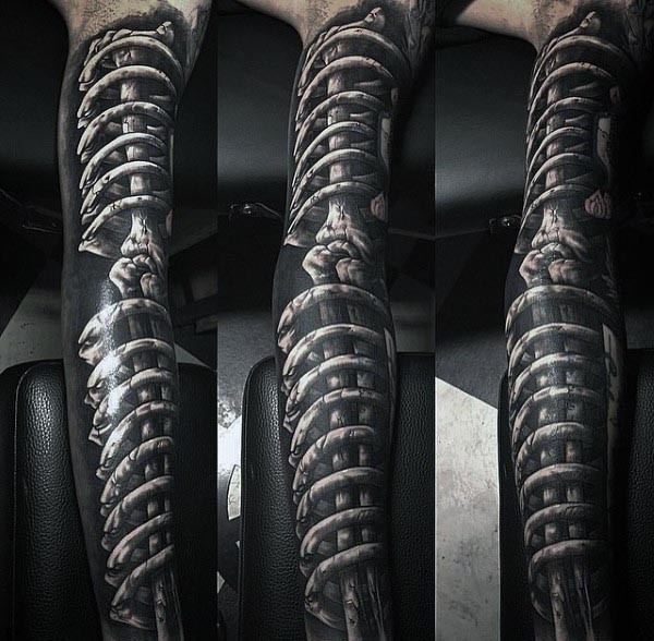 手臂写实逼真的个性骨骼纹身图案