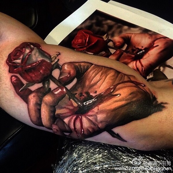 手腕处疤痕遮盖的纹身效果图