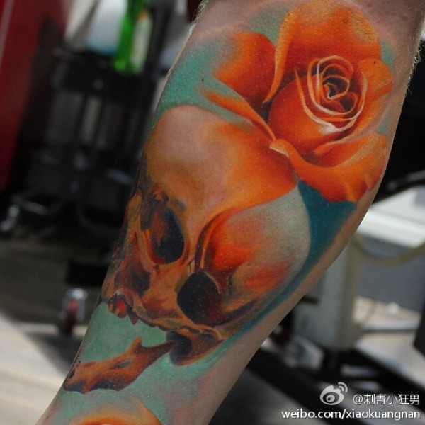 欧美玫瑰纹身 男生手臂上花朵纹身图片