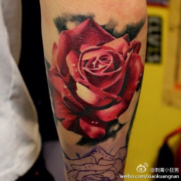 欧美玫瑰纹身 男生手臂上花朵纹身图片