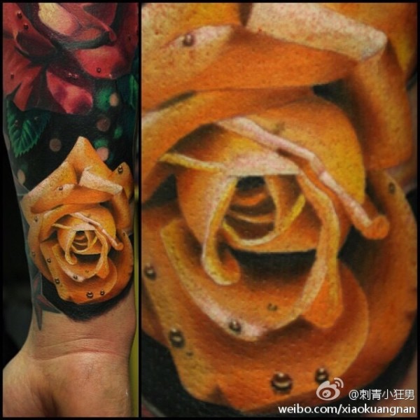 欧美玫瑰纹身 男生手臂上花朵纹身图片