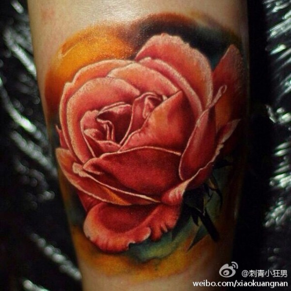 欧美玫瑰纹身 男生手臂上花朵纹身图片