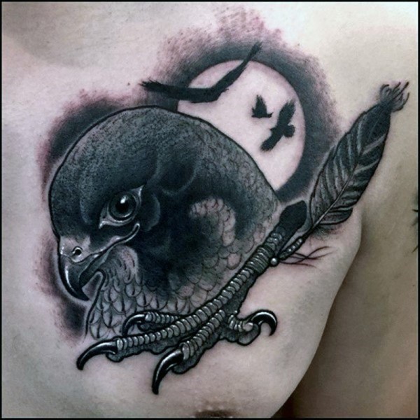 复古风格黑色怪鹰头与鹰腿胸部纹身图案
