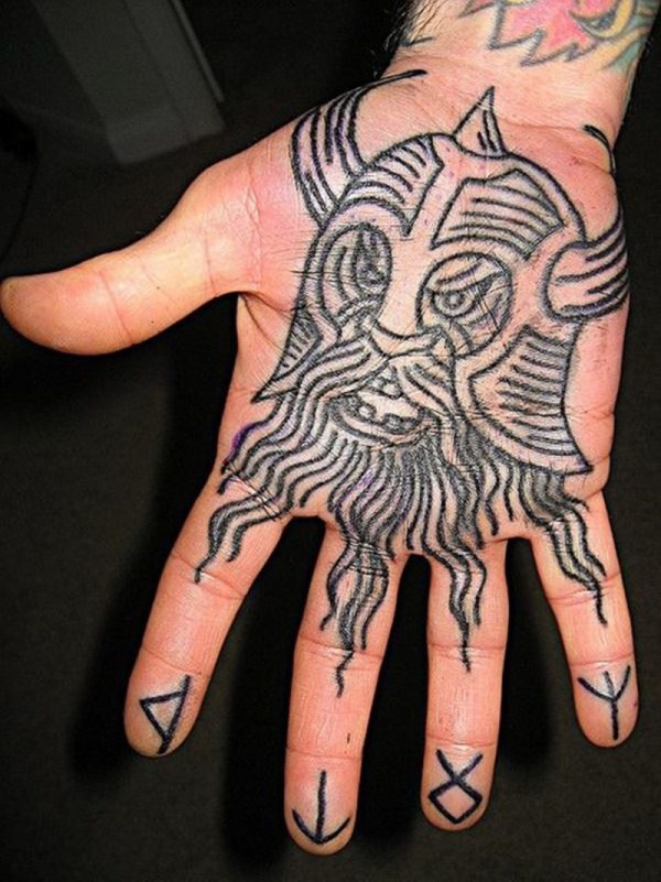 手心自制简单的黑色线条邪恶战士纹身图案