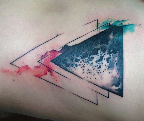神秘的黑色线条三角形与彩色泼墨纹身图案