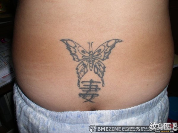 分享一款腰部时尚性感的蝶恋花纹身图案_腰部纹身图案大全_纹身图吧