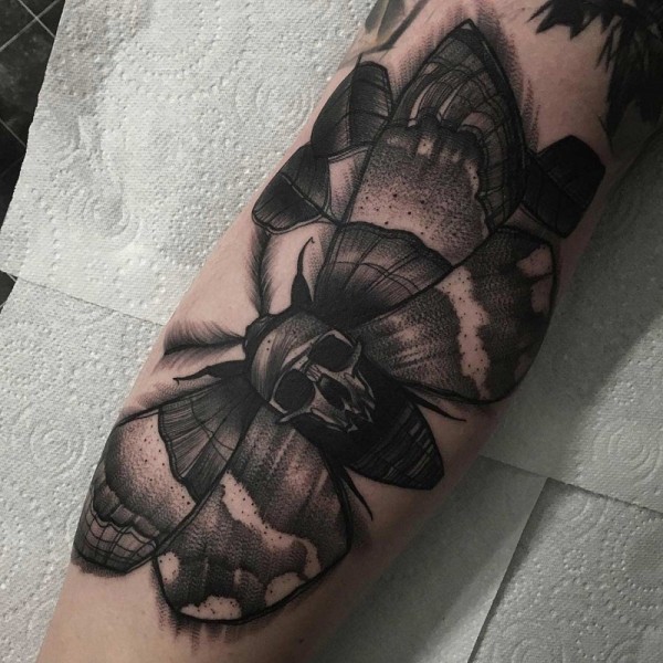 黑色飞蛾与装饰骷髅个性纹身图案