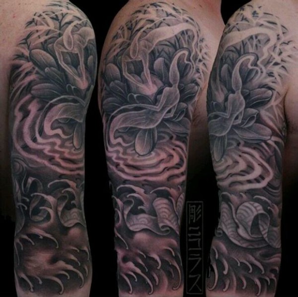 巨大的黑灰色满胸纹身图案大全来自纹身师格雷格